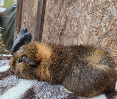 Queenie lebte mit einem anderen Meerschweinchen in einer pädagogischen Einrichtung für 0-3 Jährige. Leider ging die Pflege der Tiere im hektischen Alltag unter und nach einiger Zeit war dann die Entscheidung da: "Die Tiere ziehen aus!"