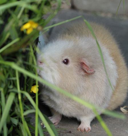 Foxy war eines von 10 Meerschweinchen, welche in einem kleinen Käfig hausten. Sie kam vor zwei Jahren zu uns und lebt seither im großen Meerschweinchenhaus.
